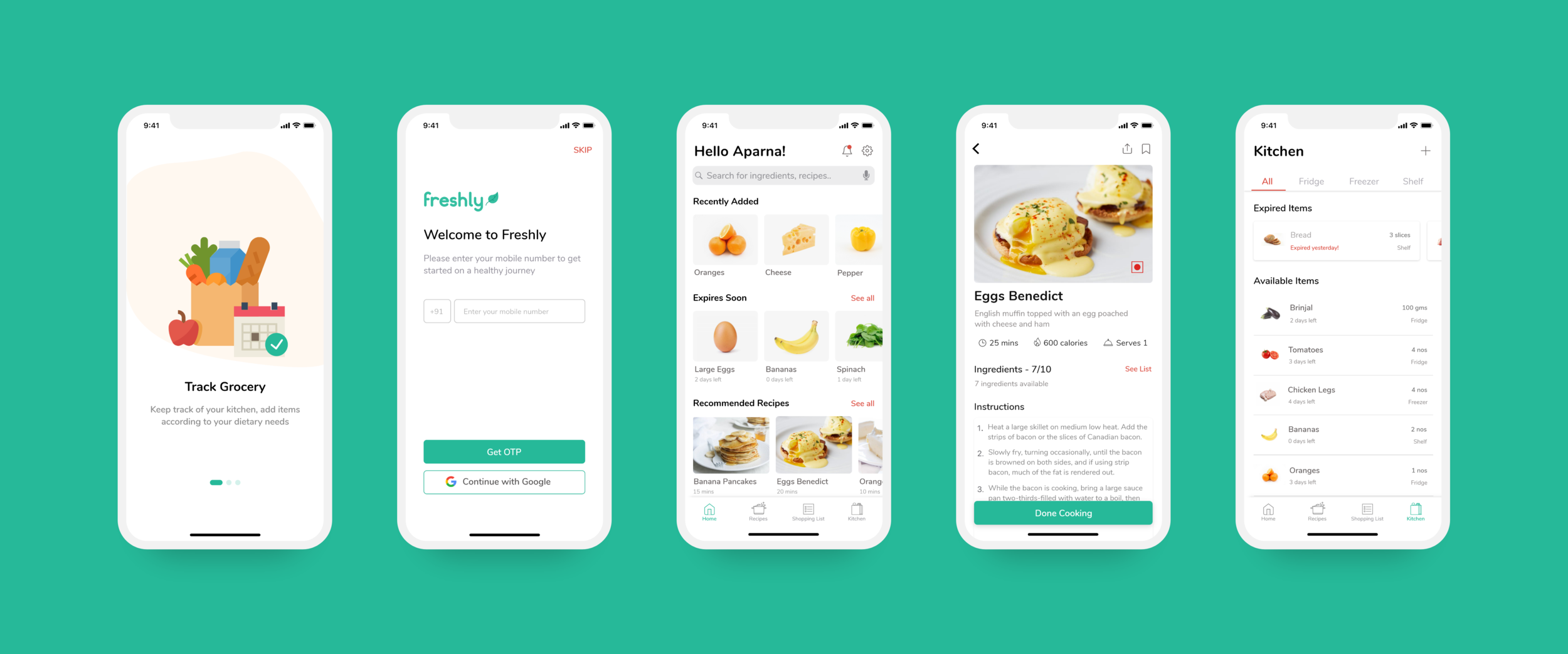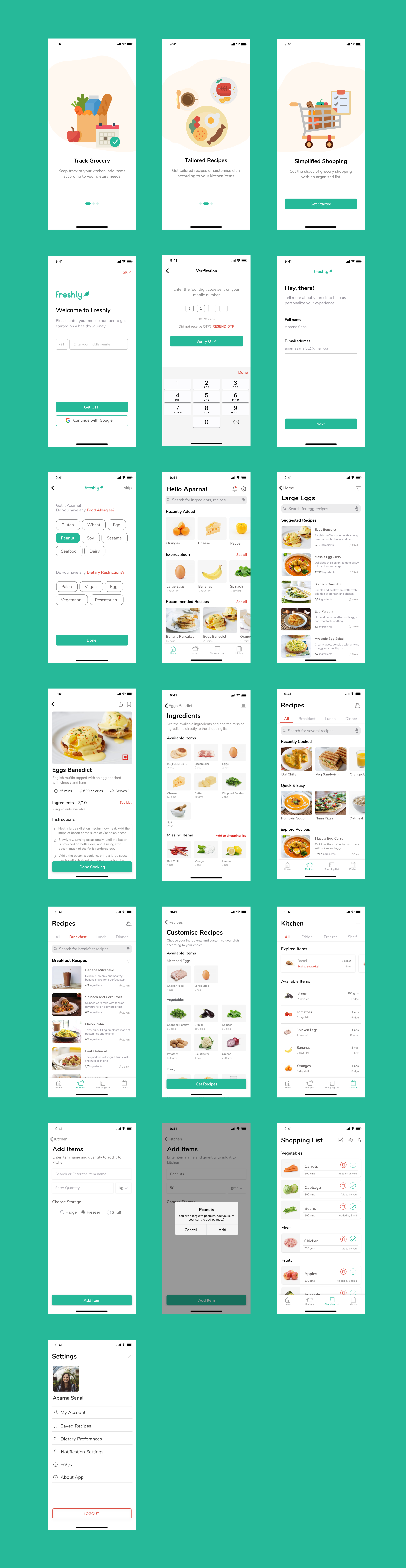Freshly is a one-stop solution for tracking groceries in and out of the kitchen. Freshly helps in tracking groceries in the kitchen by providing recipe suggestions using the items already available in the kitchen, showing expiration dates, and providing reminders. Freshly also has a shared shopping list option to avoid confusion regarding grocery shopping in shared living spaces. It helps save, less waste of groceries due to expiration, and also makes the grocery shopping experience sorted.
